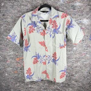Generation One Shirt Mens Small Gray Red Purple Floral Hawaiian Button Up Pocket