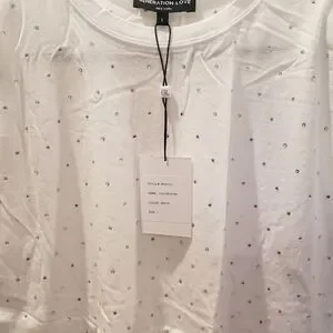 NWT Generation Love Lex Crystal Tank in White. 50% cotton 50% modal. Hand wash. Padded shoulders. Crystal embellishments throughout.