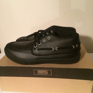 These are brand new in the box Generic Surplus men's shoes. The color is black and the size is 12. These are leather shoes .