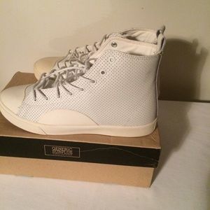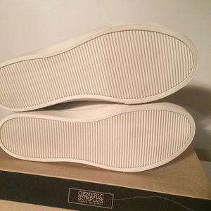 These are brand new Generic Surplus Men's Sneakers. These are white and the size is 10. These are leather.On the right shoe there is three small marks and right shoe tip is a off white from the other left shoe.