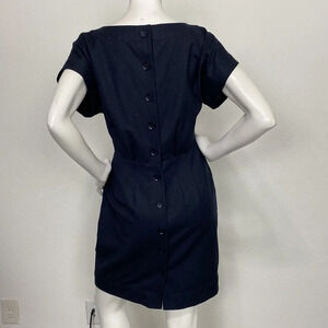 Generra Navy Blue Button Back Short Sleeve Pleated Sheath Wool Mini Dress Size 4