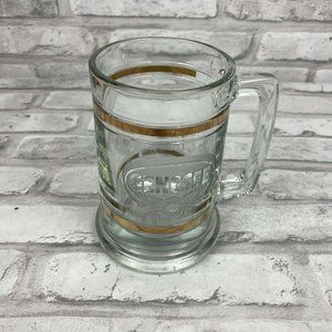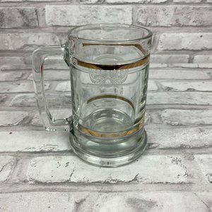 Genesee Genny Beer Stein Mug Gold Bands Etched Glass Barware