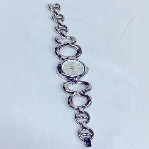 Geneva Chain Bangle Wrist Watch Silver Tone 7” Works Gorgeous