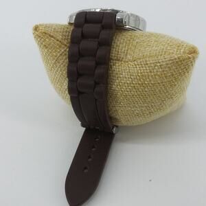 Geneva Chocolate Brown Wristwatch Zebra Animal Print Rhinestone Silicon Rubber