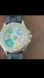 This watch has black silicone adjustable band. Czech crystals around the face. Goes with everything!!