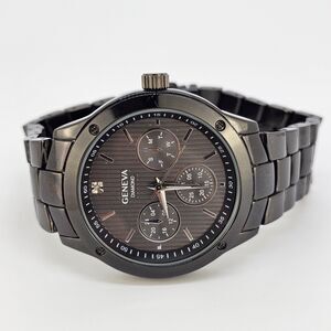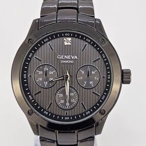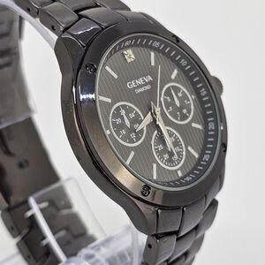 Geneva Diamond Men Quartz Watch 42MM Black Dial Bracelet Band 7.75" New Battery