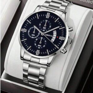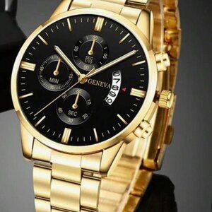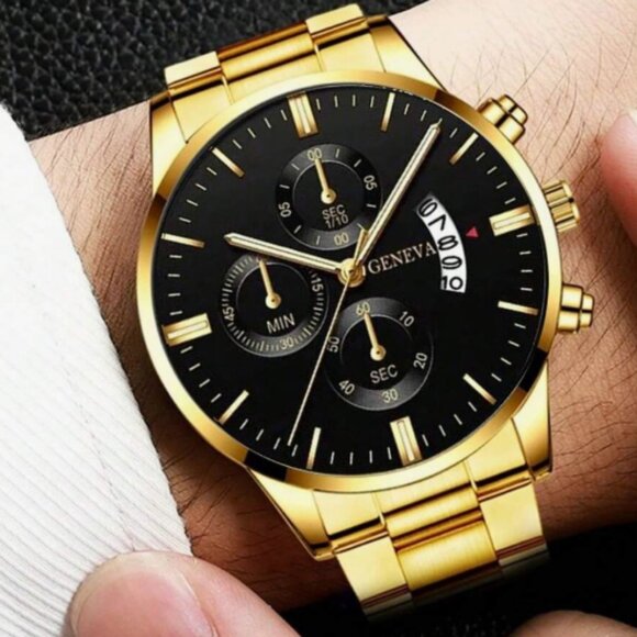 Geneva Men's Quartz Watch, Business Casual Steel Strap (Gold, Silver, or Black)