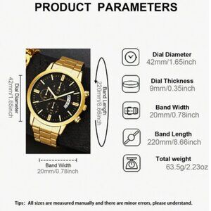 Elevate your style with this classic Men's Quartz Watch, perfect for business and casual wear. Featuring a durable steel strap (adjustable in size) and available in sophisticated Gold, Silver, or Black finishes, this timepiece boasts a sharp, elegant dial (like the striking black and gold shown) with a functional date display. Its robust construction offers a premium feel for everyday wear, making it an essential accessory for any modern man.