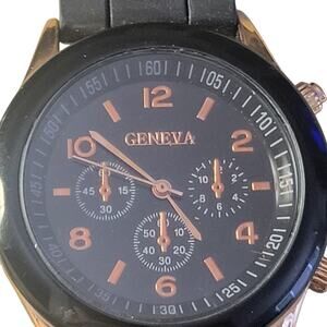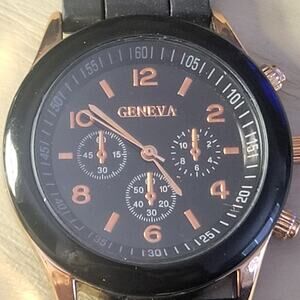 Geneva Mens Watch Chronograph styled new battery black dial copper numerals