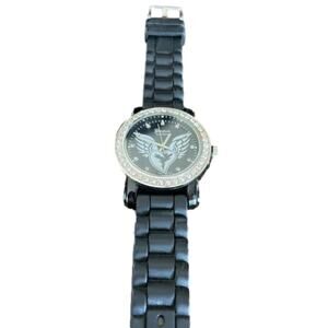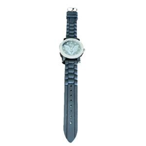 Geneva Platinum Heart With Wings Black Rubber Unisex Watch Stainless Steel. In used condition and needs new battery. Watch is approximately 10 inches long. Stainless steel back.