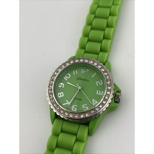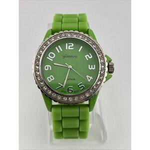 Geneva Platinum Watch Women 34mm Case Crystal Bezel Silicone Band- New Battery