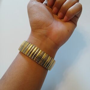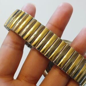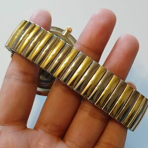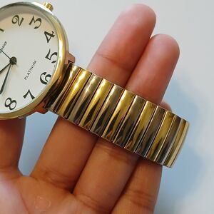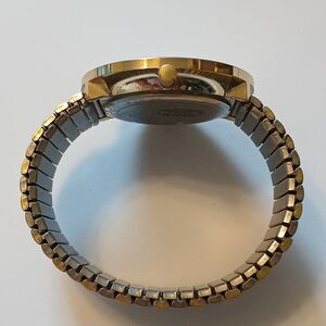 Needs a new battery. The wrist size is 6 1/2-7 inches. There are scratches on the crystal, case, and band. There are some dark spots on the band. It's a casual preppy style. Please view the photos. Thank you!