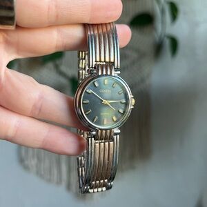 • Two-tone ribbed metal expansion band (silver and coppery gold)