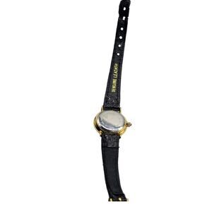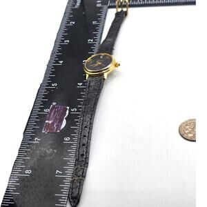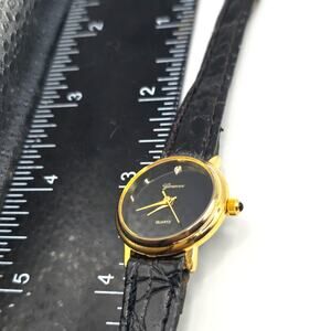 Geneva Quartz Watch Women Black Dial Gold Tone 21mm Genuine Leather Band Read