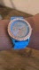 Beautiful color blue watch with gold and rhinestone trimming. Watch has never been worn but the ticker was on. Will need a new battery.