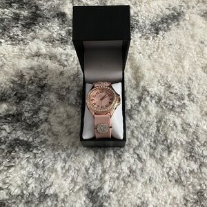 Geneva Rhinestone Watch Pink Band Analog Display Fashion Wristwatch