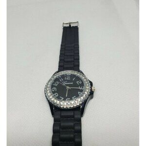 Geneva Silicone Band Stainless Steel Back Water Resistant Faux Diamond Watch