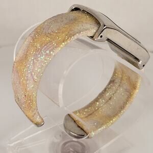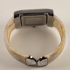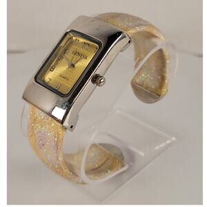 Geneva gold-tone quartz watch with a glittery cuff bracelet design. The sparkle strap adds a unique, eye-catching touch, perfect for special occasions or stylish daily wear. Easy-to-read gold-tone face and durable build. Packaged and shipped carefully from a smoke-free environment. Check my Feedback and other listings.
