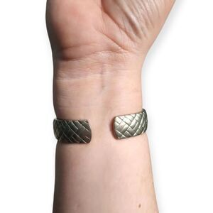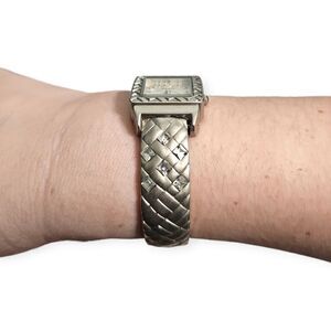 Geneva Silver-tone Basket Weeve & Crystal Open Cuff Watch