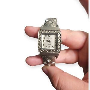 Let's be honest - time is precious. But what if time could look just as luxurious? That's where this Geneva Silver-tone Basket Weeve & Crystal Open Cuff Watch comes in. its intricately woven basket-weave design and delicate crystal embellishments, this cuff watch will add a touch of magic to any look. And yes, darling, it's all about the details. ✨