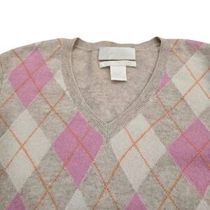 Geneva Sweater Women's Small Tan Knit 100% Cashmere V-Neck Argyle Pullover Gorpc