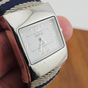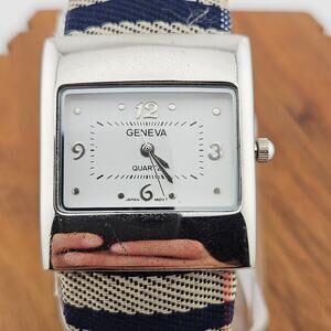 Geneva Women's Silver Tone Bracelet Cuff Watch Navy Blue Preppy Old Money Brand: Geneva
