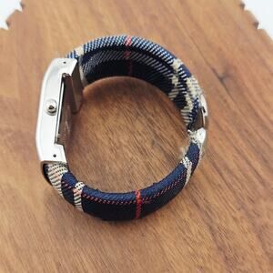 Geneva Women's Silver Tone Bracelet Cuff Watch Navy Blue Preppy Old Money