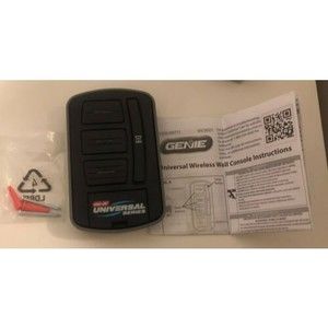 Genie Universal Wireless 3-Door Wall Console Model GUWWC-R. Easy to use with all major brands.Features delay and backlight.Product is brand new with screws and instruction manual included, but box is damaged as pictured.