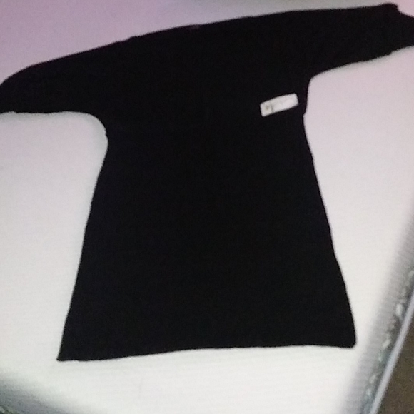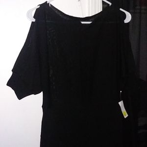 Black Sweater type dress... opened shoulders. Ridges/ lines towards bottom of dress. tryed to take close ups