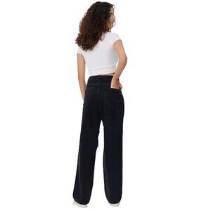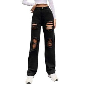 Genleck Y2K NWT BF Jeans Ripped High Waist Baggy Black Distressed Wide Leg S