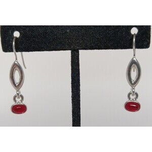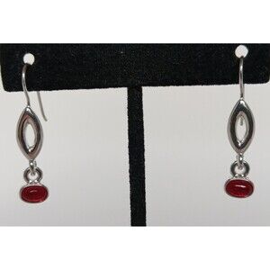 Gennaro Silvertone Red Glass Cabachon Dangle Earrings 1.5 in NWT