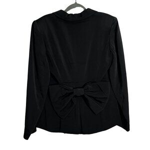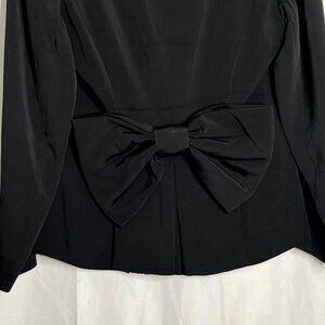 Genny Blazer Large Back Bow Detail Leather Detail Buttons Shoulder Pads Black 6