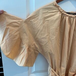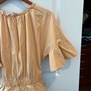 Genny Italy Peach Elbow Length Bell Ruffle Sleeves Tie Belt Pockets Romper Sz 6