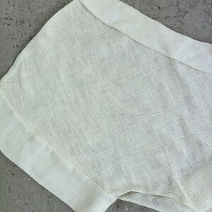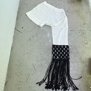 Hundred percent cotton made in Italy off shoulder with a wide open sleeve. You can use this as a beach cover or with pants as a top. Listing it as a size medium the drape that goes over one arm and under the old shoulder is 15 inches from the top of the shoulders to the bottom of the white is 36 inches to the bottom of the fringe of the back is 56 inches. This is a very coolvintage piece. Listing says cream, but it’s really like a winter white.