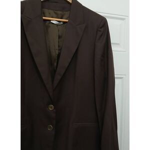 Genny womens size 12 Italian fine Virgin Wool quiet luxury dark brown blazer 46