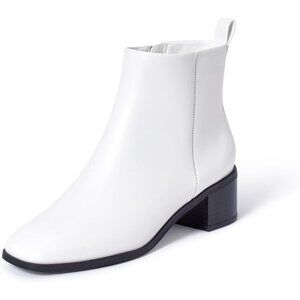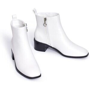 Genshuo Ankle Boot Women Size (6-10) White Polyurethane Zipper Heeled Square Toe