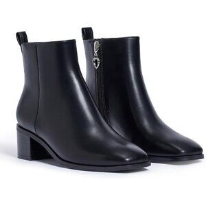 Genshuo Ankle Boot Women Size (7-9) Black Polyurethane Zipper Chunky Heel