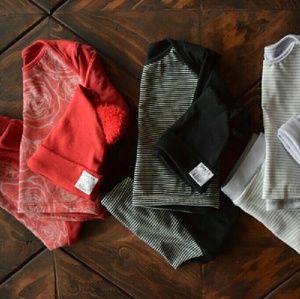 Gentle Babies complete matching set. Includes soft cotton blend basic long sleeve tee, joggers and faux ear beanie. Coral pink with floral print. Made with French Terry cloth. Washable.