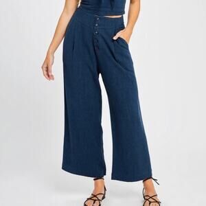 Gentle Fawn Navy Caesar Coastal Grandma High Waisted Linen Pleated Pants XS