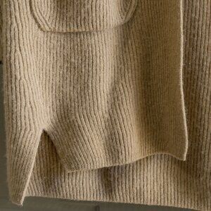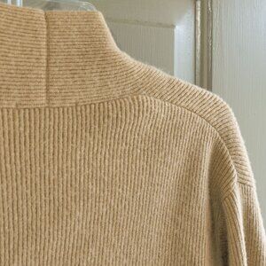 Gentle Herd Cardigan Cashmere Tan Beige Neutral Open Front Long Sleeve Sweater, size small. The Gentle Herd wool and cashmere blend cardigan is a neutral and classic sweater.