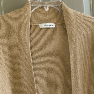 Gentle Herd Cardigan Cashmere Tan Beige Neutral Open Front Long Sleeve Sweater