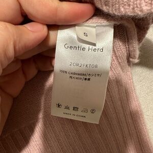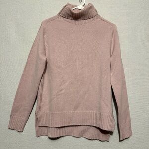 Gentle Herd 100% cashmere turtleneck sweater in a blush pink. Used, but in excellent condition. Super soft and cozy! Brand tag at the neck has been cut out. Side split hems - slightly longer in back. Seems to run slightly large based on measurements. Size small.