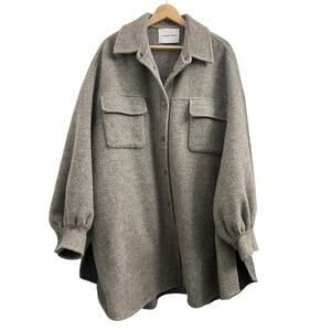 Gentle Herd Oversized Button-down Wool Cashmere Shirt Jacket, Fog Gray size S