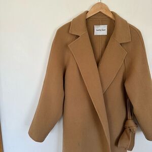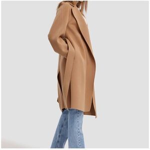 Gentle Herd Women’s Single Breasted Belted Wrap Wool Coat in Color Camel Tan