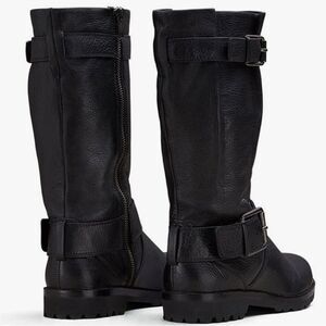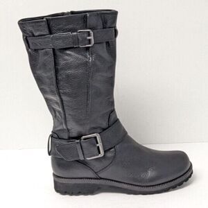 Gentle Souls BUCKLE UP Black Leather Buckle Side Zip Up Calf High Moto Boots