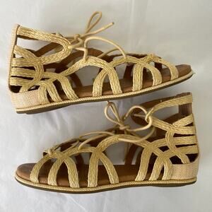 Gentle Souls Break My Heart 3 Size 7.5 Raffia Natural Leather Sandal Comfort