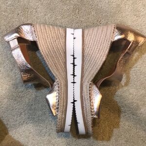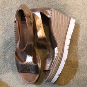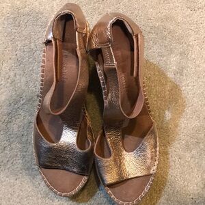 Gentle Souls By Kenneth Cole Bronze Metallic LeatherElyssa T-Strap Wedges-8.5