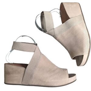 Gentle Souls Gianna taupe perforated leather bracelet wedge heel sandal 10