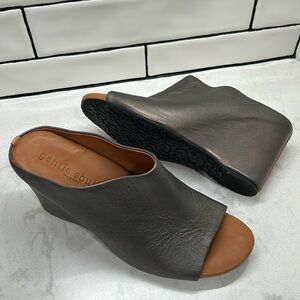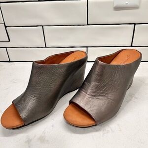 Gentle Souls Kenneth Cole IVY Women's 10M Metallic Leather Wedge Heel Mule Peep