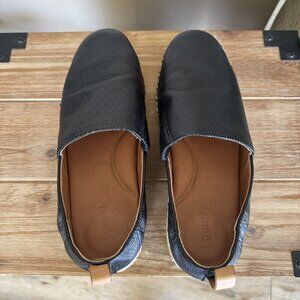 Gentle Souls Lizzy Slip On Black Pebbled Leather Espadrille Loafers Size 8.5